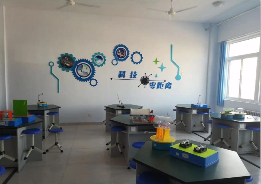 科學(xué)實訓(xùn)室由基礎(chǔ)設(shè)備、圖書、科學(xué)技術(shù)類(科技玩具 探究操作)、生命科學(xué)類、物理科學(xué)類(聲光電磁)、力學(xué)系列、地理科學(xué)、落地式活動儀器和智慧墻等方面的體驗主題組成。這些體驗主題集科學(xué)性、知識性、趣味性、操作性于一體,以最直觀的形式演示出來。學(xué)生親自操作,動腦動手,發(fā)現(xiàn)其中的奧妙,掌握其中的科學(xué)原理。