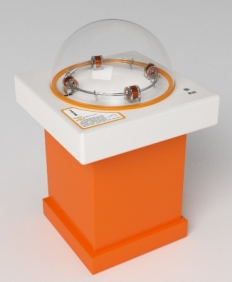 展項(xiàng)描述:展項(xiàng)由環(huán)形支架和磁懸浮燈泡構(gòu)成。觀眾走近展臺(tái),會(huì)看到燈泡懸浮在空中;按下“啟動(dòng)”按鈕,可以點(diǎn)亮懸浮在空中的燈泡。