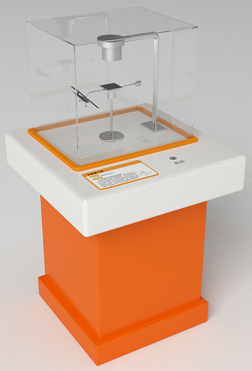 三、功能概述:展品由針狀金屬電極、高壓發(fā)生器、旋轉(zhuǎn)電機和操作按鈕組成。按下“啟動”按鈕,電機帶動一組針狀金屬電極旋轉(zhuǎn),隨著兩個針狀電極逐漸靠近,在兩個電極尖端之間會發(fā)生放電現(xiàn)象。導體上電荷的分布與其表面形狀有關,導體表面尖銳的地方,電荷的分布比較密集,當電荷聚集達到一定密度時,產(chǎn)生很大的電場,擊穿空氣。展品中的兩個電極,一個接高壓,另一個接地。兩根尖針逐漸靠近,在強電場的作用下,尖端附近的空氣被電離,出現(xiàn)放電火花,發(fā)出噼里啪啦的聲音。