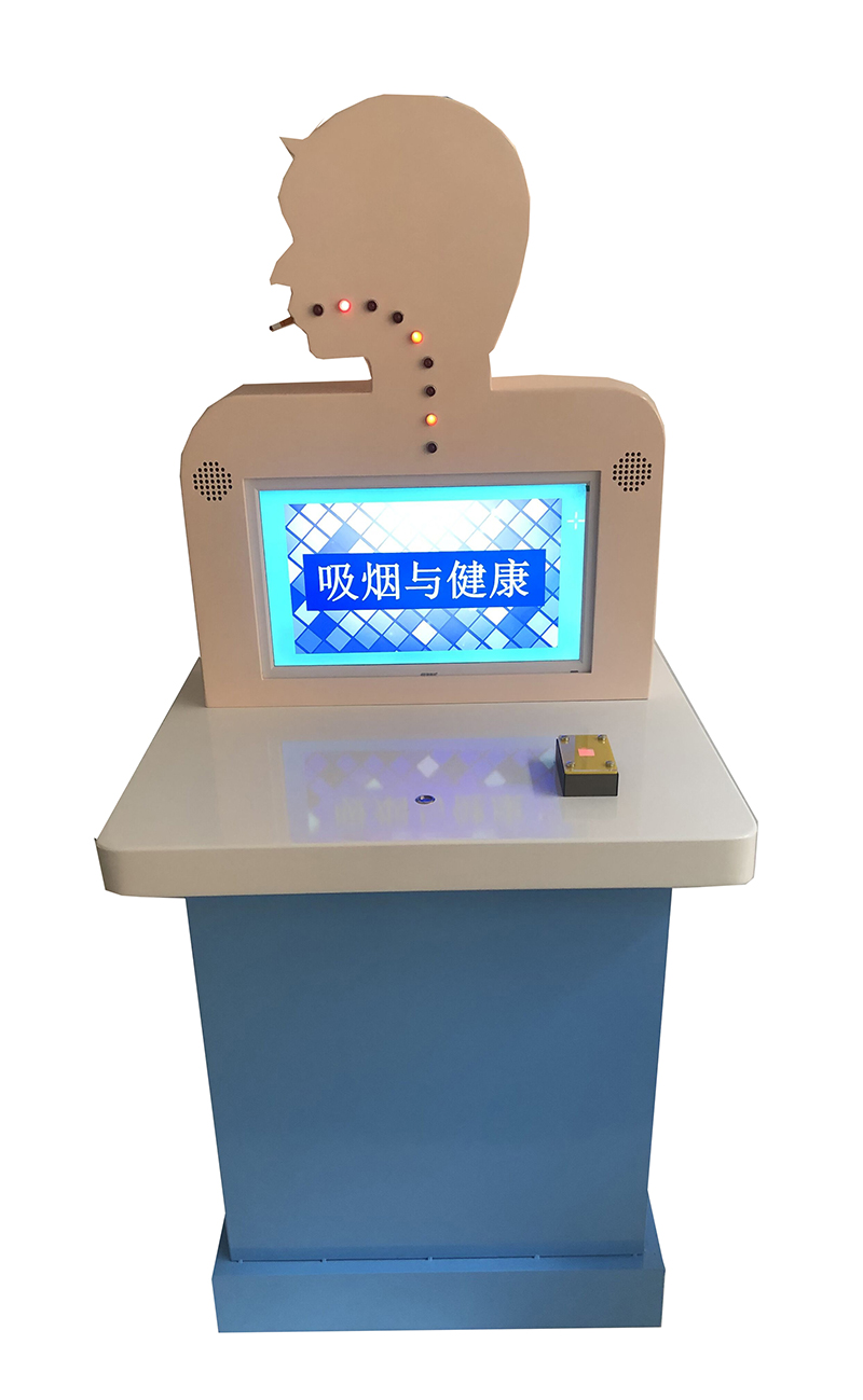 三、功能概述:展品由人形立板、多媒體裝置和打火機模型組成。觸摸“打火機”,觀看動畫,吸煙有哪些危害呢?吸煙有害健康,但還是有不少人吸煙,并通過二手煙影響他人。煙霧中含有尼古丁、煙焦油、一氧化碳等多種有害物質,對呼吸系統和心血管系統損害很大,會導致很多疾病的發生,還可能引發癌癥。為了健康,珍惜生命,遠離煙草!