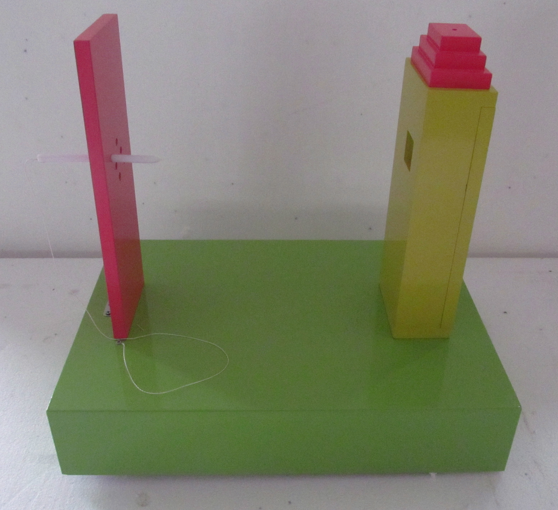 原理:柵格和啄木鳥介質片左右移動,柵格中的黑色部位遮擋住光線,透明部分透過光線形成的影子,柵格左右移動,屏上的影子不停地改變,形成動畫