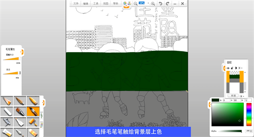 選擇毛筆筆觸給背景層上色