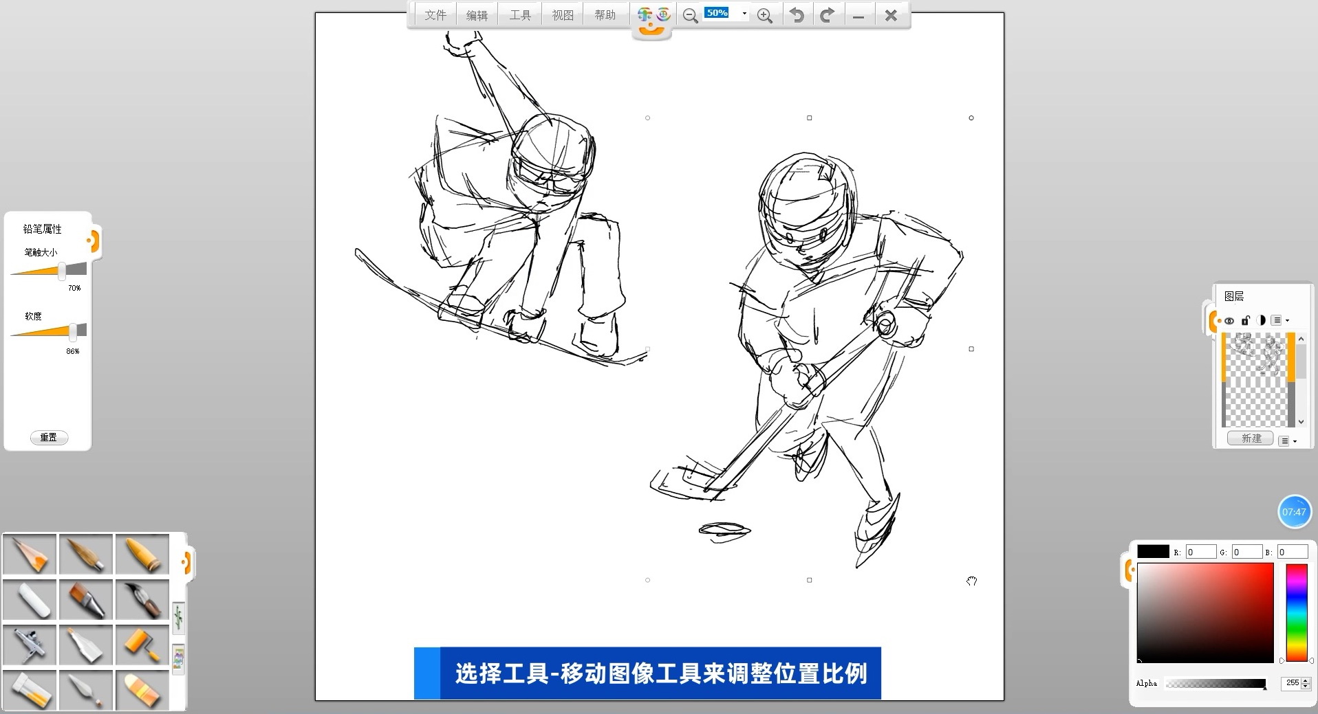 02新建一個空白圖層,選擇鉛筆筆觸來繪制海報的草圖
