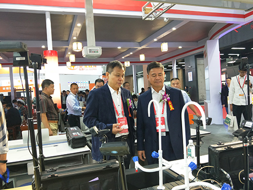 廣東省教育廳副巡視員邱克楠(右)蒞臨廣視通展位參觀指導(dǎo)