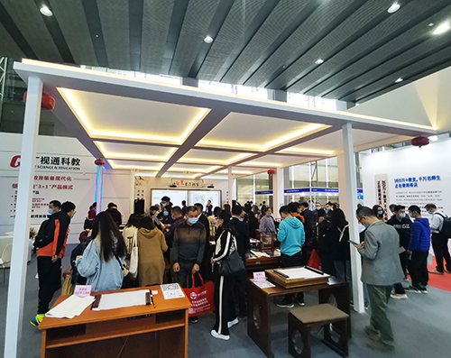 本次展會,廣視通攜智慧書法教室、實驗教學與操作考評系統等產品,吸引了眾多參展嘉賓駐足了解。