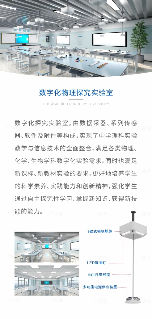 教育裝備數字化一站式解決方案,智能理化生實驗室、中考實驗操作考評系統、實驗仿真與教學系統、數字書法教學云系統、中學AI教考實驗室(升降式/便攜式智能終端)、頂裝/吊裝實驗室、探究實驗室、科學實驗室、人工智能科創實驗室、智慧書法教室、數字音樂教室、美術教室、數字地理教室、數字歷史教室、心理咨詢室、閱覽室、舞蹈室、陶藝室、烹飪教室、通用技術實驗室、勞動教育功能教室、科普探究等