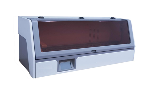 【技術參數】 1. 工作位:18個,試劑缸16個、其中水洗缸一個,烘干缸一個。 2.抖動次數:1次/10秒,(可調) 3.滴液停留時間為:0 ---240秒, 并可任意調整; 4.單缸處理時間:0----59分59秒可調; 5.缸容積為:650mL 6.烘干缸溫度在室溫---65℃可調; 7.流動式自動水洗; 8.單次處理染片數量:約60片; 9.電源:220Ⅴ±5Ⅴ 50Hz 功率: ≤500 W。