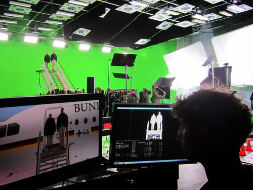 2.現場提供實時的預合成畫面 利用這個系統可以解決很多技術問題,比如:--攝像機的位置,鏡頭 運動,焦距控制多,構圖,場景應布置,燈光等; -- 在哪里、如何加特效, -- 指導演員相對虛擬場景和虛擬角色的運動等, -- 導演也可以利用預合成畫面更直觀地與包括攝影、演員、燈光包括后期等相關人員溝通。 現場就可以用預覽結果進行編輯,導演在第一時間就可看到結果;在視效鏡頭拍攝中減少不確定因素,節省時間,保持導演對畫面創作的控制。