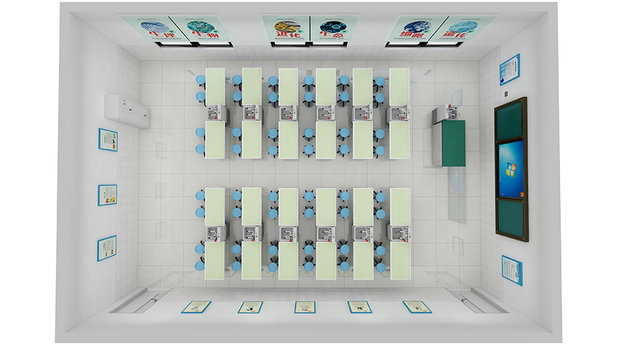 理化生的學科性質決定了該學科教室必備的實驗功能,東方 Sky-Docking 實驗室的模塊化組合能有效實現學科教室的功能分區,包括教學區、實驗區、研討區、展示區等。采用吊裝式方案的專業實驗室,由于解放教室地面,可根據教學需求,任意組合為實驗模式、上課模式、研討模式等,進一步拓展專業實驗室的應用。