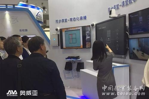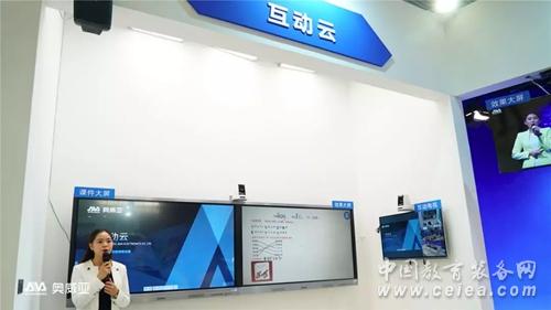 展會期間,作為新疆兵團信息化建設的典型,我們在新疆兵團展館展示:新疆當地4所學校與展館現場互動的異地課堂,整個互動過程實時直播。教育部副部長朱之文,對奧威亞在新疆展館展示的互動方案贊譽有加。