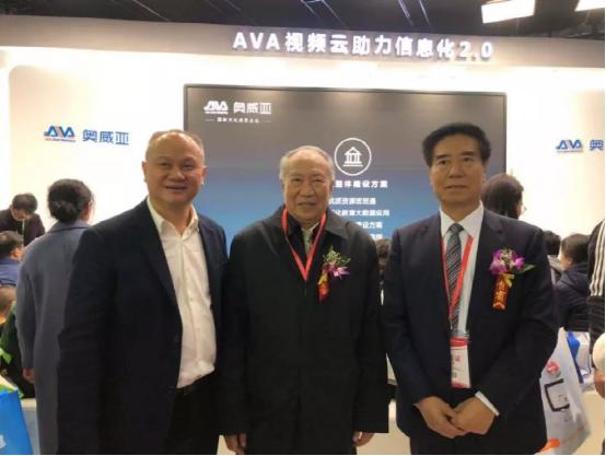 奧威亞創(chuàng)始人歐俊文(左一)與原國(guó)家教委副主任柳斌(中間)和中國(guó)教育裝備行業(yè)協(xié)會(huì)會(huì)長(zhǎng)王富(右一)合影