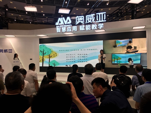 本次奧威亞攜帶全系列先進教學科研創新成果和典型應用案例隆重亮相展會。其以“致用”為中心的產業理念,以“超高清互動+AI云端物聯”為特色的產品體系,以“創造未來”為目標的創新概念,成為當天展會的靚麗風景線,更成為攪動智慧教育市場的一股“新”旋風。