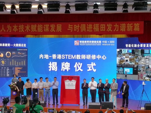 隨后深圳福田區教育局局長田洪明、香港STEM教育聯盟副主席黃錦良、中國教育科學研究院黨委書記殷長春紛紛上臺發言,暢談智能教育的未來。