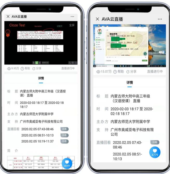 2月6日,阿拉善盟第一中學(xué)在奧威亞錄播教室和移動(dòng)錄播設(shè)備支撐下,順利組織高三學(xué)子開展“空中課堂”,這也是內(nèi)蒙古自治區(qū)第一個(gè)實(shí)施疫情期間“停課不停教、不停學(xué)”的學(xué)校。通過奧威亞云直播技術(shù),學(xué)生只需在家通過手機(jī)、平板、電腦等便攜方式即可進(jìn)行聽課,真正實(shí)現(xiàn)在“師生不聚集”前提下,開展教學(xué)活動(dòng)。