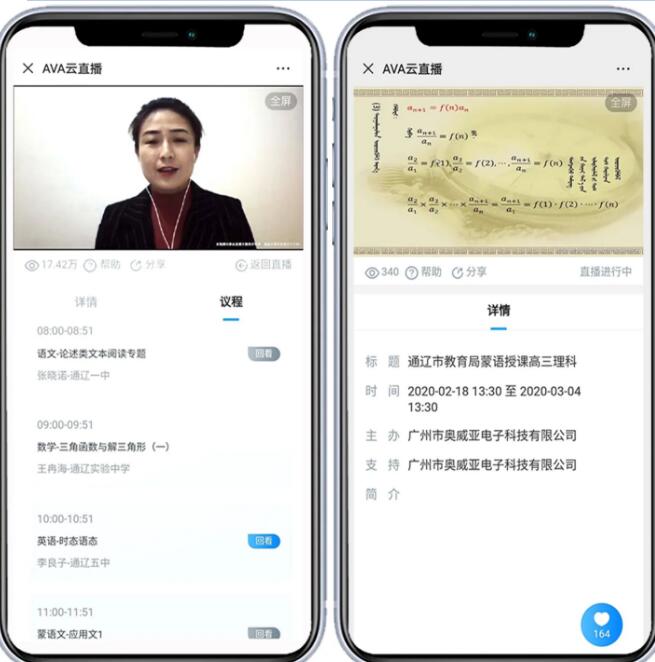 疫情期間,蒙古自治區(qū)教研室為全力保障全區(qū)蒙古語授課高三師生在線學(xué)習(xí)需求。在2月3日開始,特編排全自治區(qū)名校“內(nèi)蒙古師范大學(xué)附屬中學(xué)”的高三蒙語部的特級(jí)教師,利用奧威亞輕松錄軟件和直播云平臺(tái)為全區(qū)12萬余名蒙族學(xué)生開展了直播教學(xué)活動(dòng)。截止3月4日,直播點(diǎn)擊量突破300萬人次。