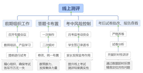 受疫情影響,建始縣業(yè)州鎮(zhèn)大堰中學(xué)決定利用希沃易課堂進(jìn)行線上月考測(cè)評(píng)。學(xué)校采取以下四個(gè)步驟有效開展了在線測(cè)評(píng)。
