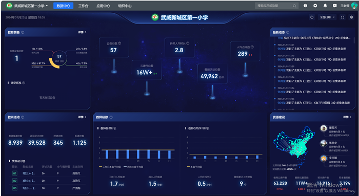 作為甘肅省評定的“智慧教育標桿校”,武威新城區第一小學一直以教育信息化作為提升辦學水平的突破口,著力打造現代化學校,始終緊握新時代現代化教育機遇,致力于改善辦學條件。學校搭建了校園網絡,通過加強信息化應用培訓,教職工利用信息平臺或信息化工具開展教育科研、班級管理、網絡培訓、讀書分享、宣傳教育、家校互動等工作,大大提高了工作效率。