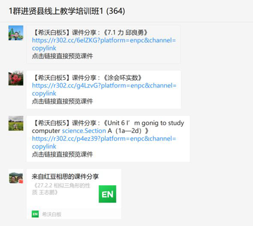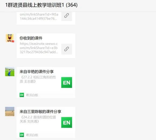 全縣參訓的5000余名教師被分流到11個臨時組建的微信群。每個群中,由希沃講師專門運營,并以直播教學、微信群交流答疑的方式進行培訓。參訓的教師們認真聽講、熱烈討論,課后及時進行實踐操作,按時完成每堂課的作業(yè)。尤其是很多年齡偏大的教師,對于這些現(xiàn)代化的教學手段不甚熟悉,但他們克服重重困難,好學好問,在希沃講師們的熱心幫助下,順利通過培訓考核。