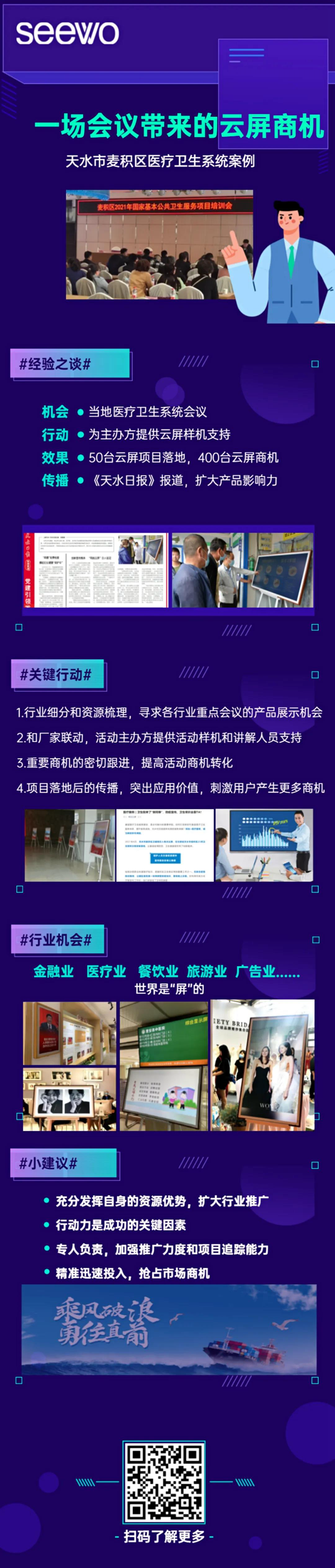 隨后,希沃屏顯事業部王濤,為各位合作伙伴分享了入校推廣的優秀案例“一場會議帶來的云屏商機”。