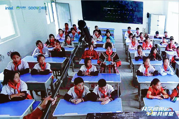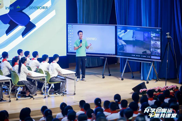 負責這次遠程課堂搭建的是教育科技品牌希沃,其專遞課堂方案曾為鄉村學校與城市學校搭建了無數橋梁。2020年,希沃專遞課堂連接廣州與貴州,喚醒了貴州團結鄉小學的孩子們的音樂夢。這一次,搭載著英特爾技術,他們再次成為連接一百所學校的樞紐,將奧運知識傳遞到每個角落去,點燃了鄉村孩子的體育夢。