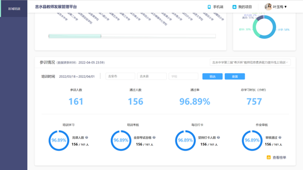 此次線上培訓(xùn)活動為期14天,分設(shè)7節(jié)線上課程以及線上考核環(huán)節(jié)。報名開始后,吉水中學(xué)教師積極響應(yīng),踴躍參與,參與人數(shù)達(dá)到了161人,其中156位老師通過培訓(xùn),通過率達(dá)到96.89%。此次培訓(xùn)旨在普及信息化技術(shù)工具應(yīng)用,幫助教師掌握交互式課件制作的方法和美化技巧,掌握微課制作技巧并掌握信息時代的學(xué)生評價與管理方法。