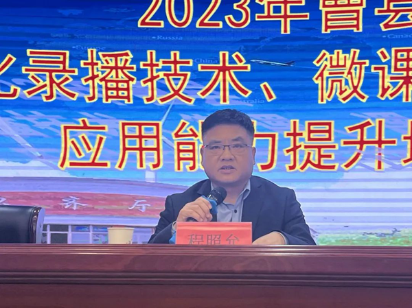 程照允同志在培訓活動開始前強調,為進一步推動數字化賦能在教育領域的深入應用,要充分發揮現代教學媒體輔助作用,提升教師教育信息化技術能力與信息素養,形成人人學現代技術理論、人人懂技術、人人用設備的良好局面,全面推進教育教學高質量發展,提升曹縣教育現代化水平。
