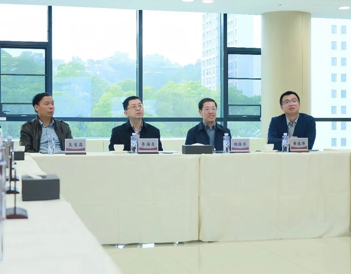 當天下午,廣東省教育研究院李海東副院長一行蒞臨希沃總部,廣東省教育研究院以及教育研究院辦公室、基礎教育研究室、教學教材研究室和基礎教育質量監測室的領導專家共同出席本次座談,希沃副總裁魏振水、黃逸濤以及各業務代表參與了交流。