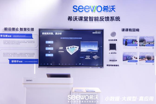 在本次展會上,希沃全新推出的智慧教室解決方案吸引了現場觀眾的駐足體驗。其中,全新AI教學終端——希沃第七代交互智能平板配備了行業內首創AI四目攝像頭*,搭載希沃自研教學大模型以及專屬的AI算力芯片,結合課堂智能反饋系統,從而實現對教室全景的覆蓋,以及更精準、更及時、更有效的課堂反饋。為教師提供課堂反饋、學情分析等功能,精準賦能教師教學與教研,幫助教師成長。