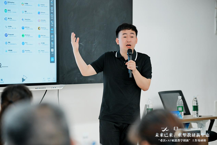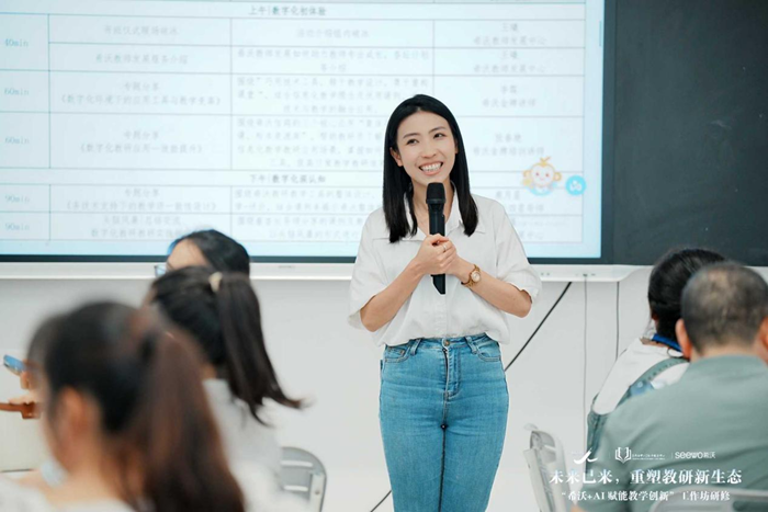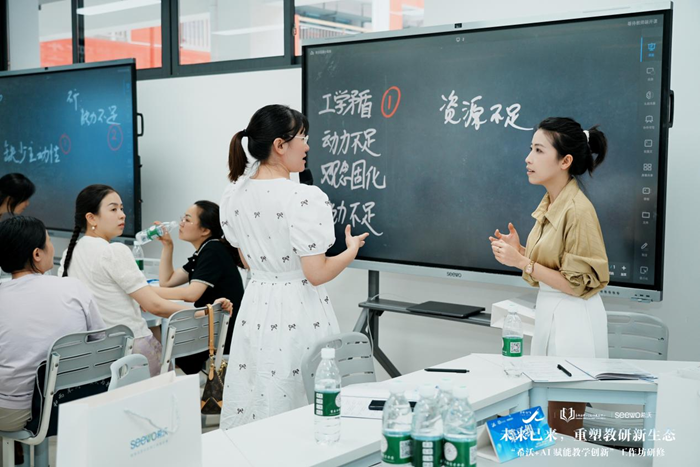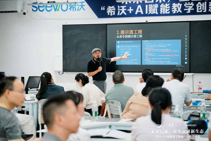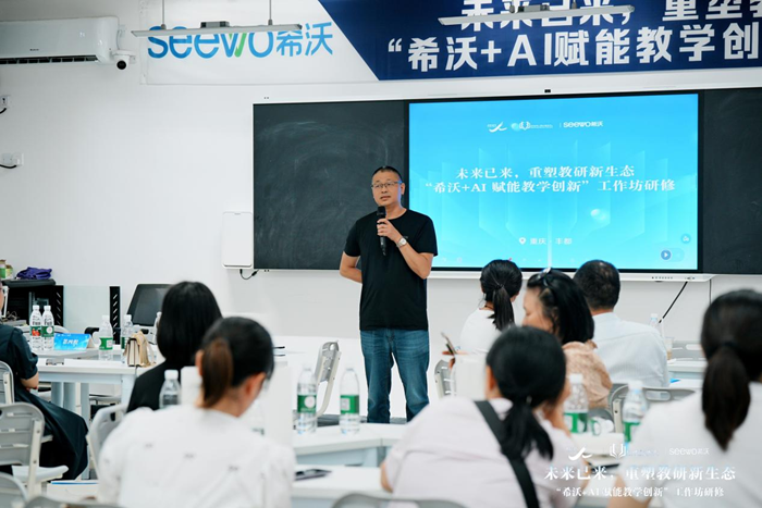 在新時代基礎教育教研工作的推進中,人工智能技術的應用日益受到重視。為響應《關于加強和改進新時代基礎教育教研工作的意見》與《基礎教育課程教學改革深化行動方案》,以及適應人工智能時代對教師專業發展提出的新要求,重慶市豐都縣教育委員會、豐都縣中小學教師發展中心與希沃合作,于2024年7月8日至9日在豐都育才中學舉辦了“希沃+AI賦能教學創新”工作坊研修活動。該活動旨在通過專題工作坊培訓,提高當地教研員的數字技術應用能力、信息素養和數據分析能力、創新思維和教學設計五大能力,并掌握生成式AI應用技能。