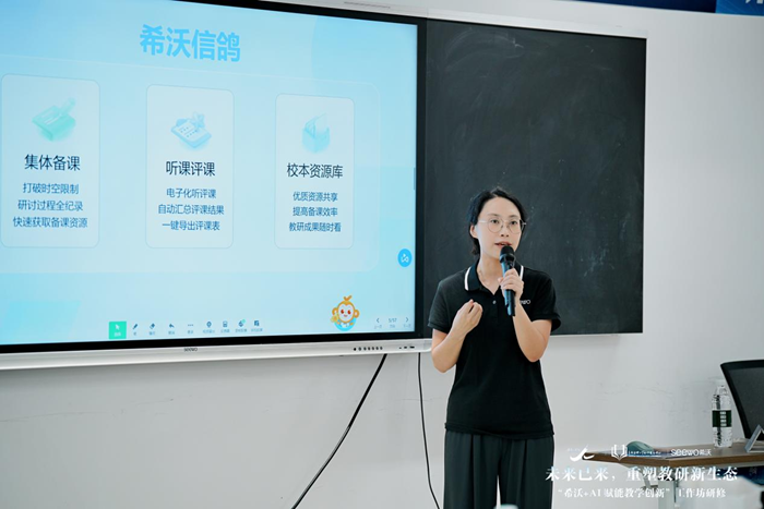 希沃培訓講師張春艷則在《數字化教研應用—效能提升》的專題分享中,圍繞希沃信鴿的三個核心應用“集體備課,聽評課,校本資源庫”,幫助教研員了解多種校內外信息化教學教研應用場景,掌握如何應用教研小工具,提高日常教學教研效率。