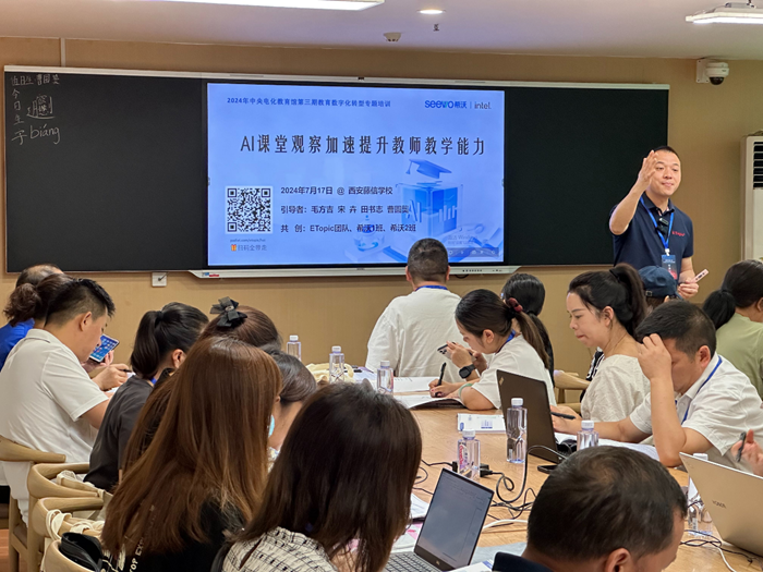 7月16日,由教育部教育技術(shù)與資源發(fā)展中心(中央電化教育館)主辦,陜西省教育信息化管理中心協(xié)辦,雁塔區(qū)教育局、西安藤信學(xué)校承辦的“2024年第三期教育數(shù)字化轉(zhuǎn)型專題培訓(xùn)班”在西安藤信學(xué)校開(kāi)班,來(lái)自天津、貴州、重慶、廣東、江蘇、內(nèi)蒙古自治區(qū)、寧夏回族自治區(qū)等全國(guó)18個(gè)省(自治區(qū)、直轄市)的老師參訓(xùn)。