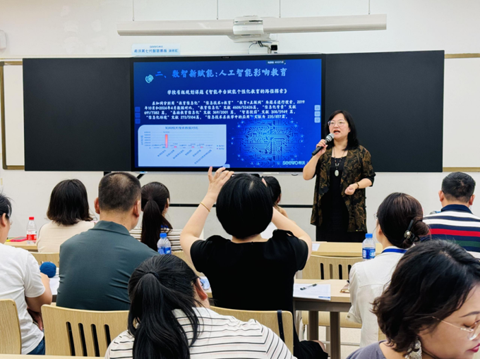 在此次研修活動現場,湘潭電機子弟中學教師曹圓龑和湖北師范大學教師周曉清分別通過“個體反思和校本社群建設”及“同伴指導和區域培訓團隊建設”四個方面分享了AI賦能區域教師專業發展的實際應用。他們提到,人工智能技術是增強教師教學和學習體驗的有用工具,教師需要結合自己的需要和經驗將技術用到實處,從多種課堂觀察范式中找準目標并深入研究,不斷精進教學方法,提升教學質量。