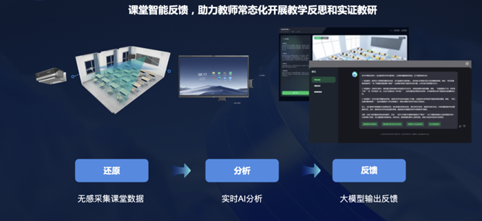 視源股份未來教育集團(希沃)軟件平臺總監劉霄翔表示:“七代機的四攝鏡頭相當于眼睛,拾音器是耳朵,進行無感采集,在AI端側算力支持下能像‘大腦’一樣去思考。”