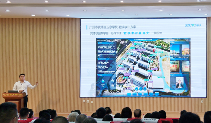 同時,希沃也展示了數字巡課與數字孿生校園在廣州市黃埔區玉泉學校的深度應用。通過三維建模技術建立校園孿生空間,該校管理者不用到現場就可以在平臺上實時查看校園環境,迅速掌握校園區域安全狀況。“在可視化的3D校園中,管理者可以通過放大縮小定位至某棟教學樓,聯合安全防控數據,實時查看某個教室的設備狀態,并且遠程管控。”