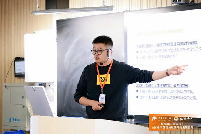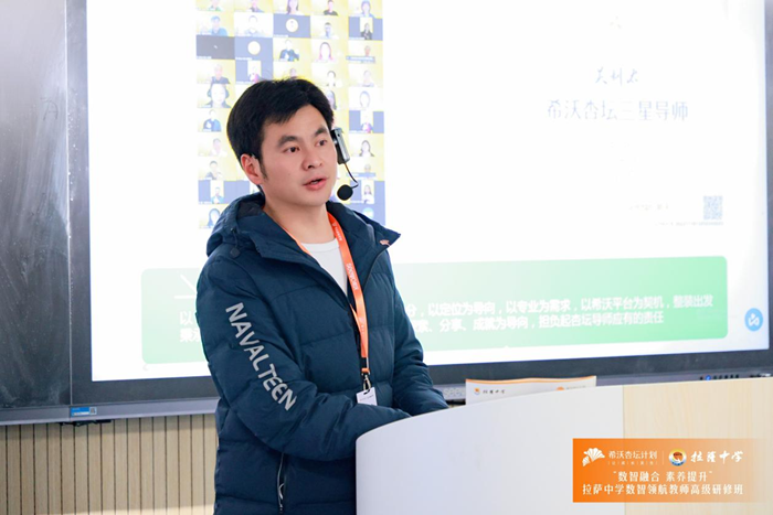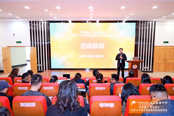 活動(dòng)開場(chǎng),拉薩中學(xué)的校長黃慶輝致辭,闡述校級(jí)“數(shù)智領(lǐng)航教師”的培養(yǎng)計(jì)劃目的與意義,并對(duì)老師們也提出了期待,希望老師們認(rèn)真學(xué)習(xí),未來更好地引領(lǐng)學(xué)校教師隊(duì)伍的成長。