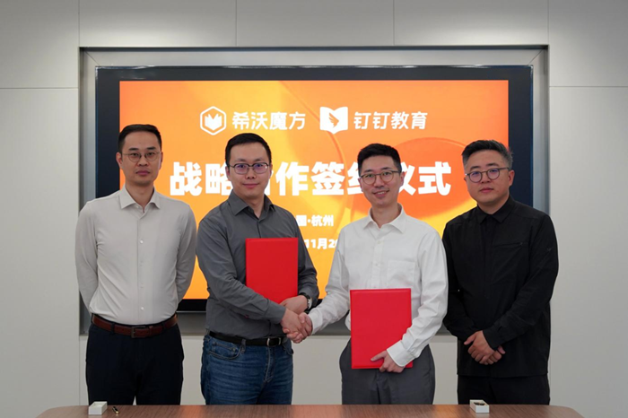11月20日,希沃魔方與釘釘教育在杭州簽署戰略合作協議。雙方將依托各自在K12教育領域的優勢積累,圍繞教育數字化開展深度合作,通過在數字基座、解決方案和AI教學教研等領域攜手探索,共同打造一站式教育服務生態體系,推動教育事業高質量發展。