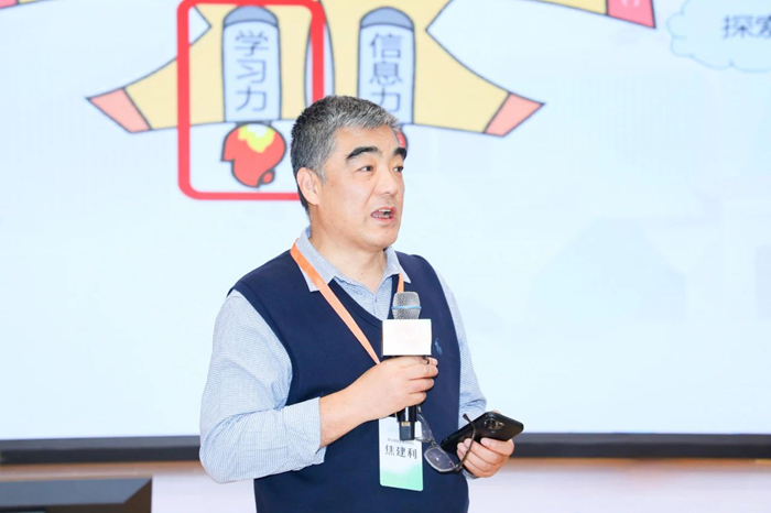 學習,是一切事物成長和發展的秘籍。教師專業成長亦是如此。那么,在教育數字化浪潮的大背景下,教師究竟該怎么學?從哪些方面著力提升?又該如何借助數字化技術進行學習?活動現場,華南師范大學未來教育研究中心主任焦建利教授為教師們帶來《人工智能時代的教師教學力》專題講座,由教學動力、教學能力、教學創造力、教學影響力的四大教學力構成要素層層剖析,啟發大家對創新教學方式、提升教學力的思考,為教師們拓展了成長方向。