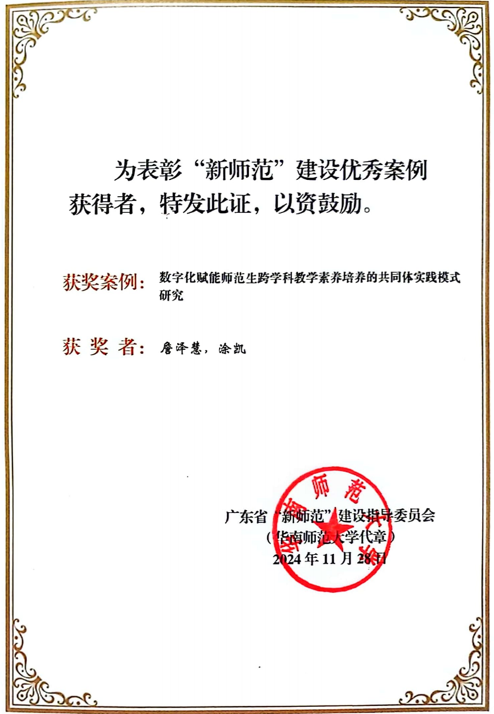 隨著數字時代的發展,師范院校在培養理念、專業提升途徑等方面發生了重要變化。如何利用數字化引領新教師提升學科素養和教學能力?如何培養具備創新思維、跨學科能力、良好道德品質、國際視野以及持續學習能力的創新教師人才?近年來,廣東省內多所高校通過校際合作、校企聯合不斷從多維度展開實踐探索,在“新師范”建設上取得了卓越成果。此次活動現場,由希沃與華南師范大學詹澤慧教授團隊合作搭建的“數字化賦能師范生跨學科教學素養培養的共同體實踐模式研究”項目便榮獲華師大特等獎榮譽,并成功入選廣東省“新師范”建設優秀案例,以切實可行的數字化路徑為區域新師范人才隊伍建設指明了方向。