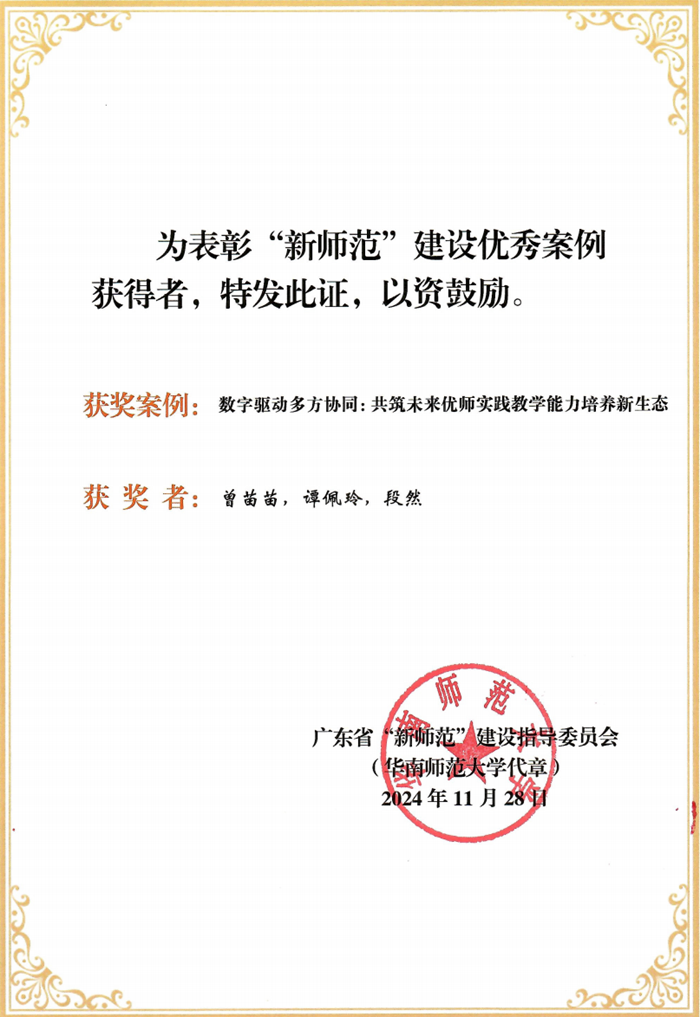 而在肇慶學院文學院,希沃的師范生AI系統也在持續釋放能量,其“數智賦能,師范卓越:師范生教學新形態體系的構建與成果綻放”項目成功入選廣東省“新師范”優秀案例100例,為推動“大國良師”的培養再添火花。