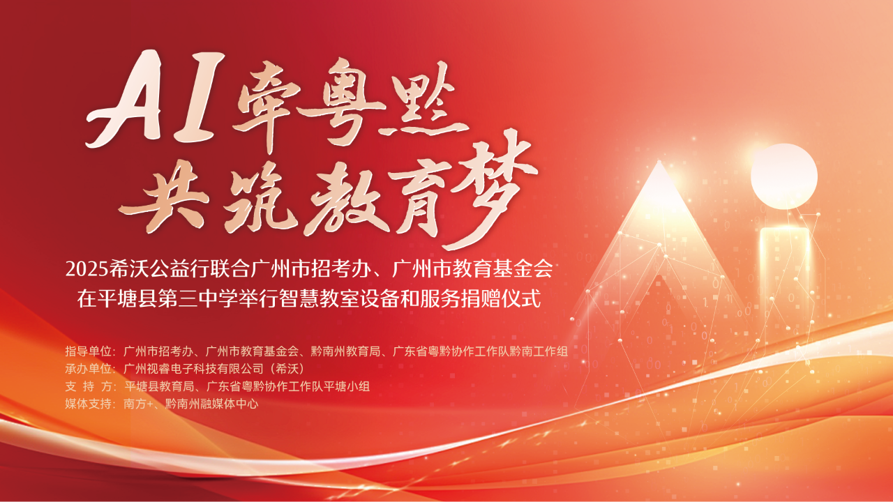 2月26日,AI牽粵黔,共筑教育夢——2025希沃公益行智慧教室設備和服務捐贈儀式在平塘縣第三中學舉行。此次活動由廣東省粵黔協作工作隊黔南工作組聯合廣州市招考辦、廣州市教育基金會共同組織,旨在深化東西部協作,推動教育資源共享,助力平塘縣教育事業高質量發展。