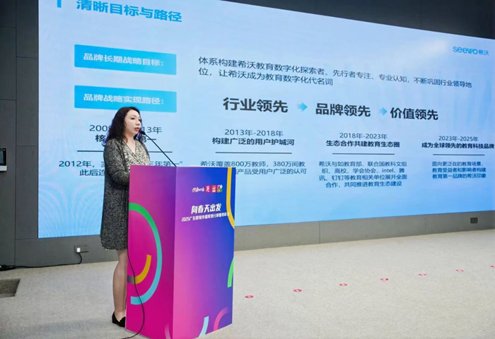 本次活動(dòng)中,來(lái)自政府機(jī)構(gòu)、學(xué)校、企業(yè)的代表深度解碼傳播創(chuàng)意和教育故事。希沃品牌公關(guān)經(jīng)理鄧佩詩(shī)分享了希沃品牌傳播的經(jīng)驗(yàn)。她表示,希沃始終以“用戶價(jià)值”為核心,通過產(chǎn)品創(chuàng)新、場(chǎng)景化傳播、社會(huì)化共創(chuàng)以及長(zhǎng)期主義,推動(dòng)品牌從“行業(yè)知名度”向“社會(huì)價(jià)值認(rèn)同”升級(jí)。