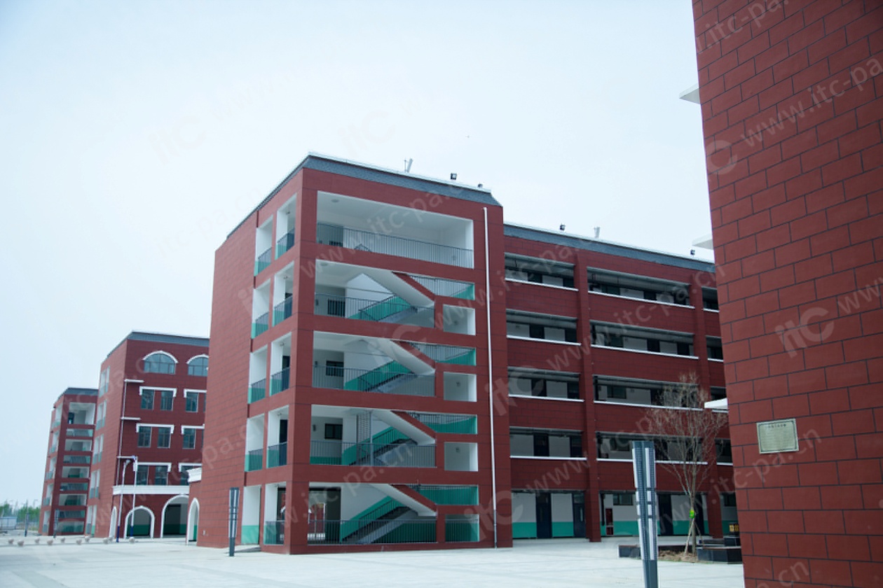 itc根據育華中學的建筑樓進行設計, 教學樓公共走道等無吊頂區域設置壁掛音箱,教室設置點對點的控制方式,在室外及操場區域設置室外音柱,組成一套數字化、智能化的校園信息系統, 實現教育過程的全面數字化,從而提高教學質量、科研和管理水平。