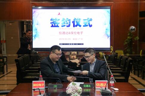 itc與信通達智能科技有限公司在產品采購、整體解決方案、品牌打造等不同層次的合作推進達成合作意向,并現場舉行簽約儀式,雙方希望在未來的業務中有更深的合作。