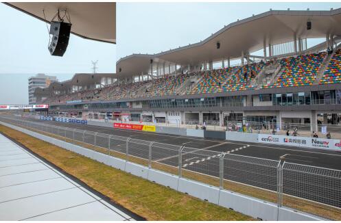 株洲國際賽車場全長3.77公里,包含14個半徑和速度各異的彎角,itc為看臺設(shè)計了二分頻線性陣列全頻音箱,投射遠,穿透力強,令這場最刺激的汽車賽事有了專業(yè)擴聲保證。