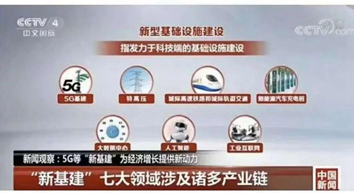 3月4日,中共中央政治局常務委員會召開會議,指出要加快5G網絡、數據中心等新型基礎設施建設進度。區別于傳統“基建”,“新基建”主要發力于科技端,包括5G基站建設、特高壓、城際高速鐵路和城際軌道交通、新能源汽車充電樁、大數據中心、人工智能和工業互聯網七大領域。