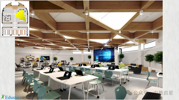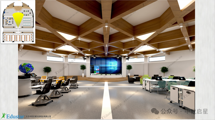 下圖為中教啟星設(shè)計(jì)團(tuán)隊(duì)為該項(xiàng)目設(shè)計(jì)的三維布局效果圖: