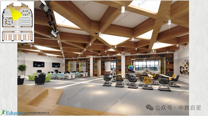 北京中教啟星科技股份有限公司非常榮幸受邀參與到該學(xué)校的創(chuàng)新空間的設(shè)計(jì)打造工作中,結(jié)合學(xué)校辦學(xué)理念和場地空間,引入國際先進(jìn)的學(xué)習(xí)場景理論,為學(xué)校精心設(shè)計(jì)了高中沉浸式主動學(xué)習(xí)中心,滿足學(xué)校師生開展探究學(xué)習(xí)、虛擬實(shí)驗(yàn)探究、合作式學(xué)習(xí)、復(fù)習(xí)串講、社團(tuán)活動、興趣小組、項(xiàng)目式學(xué)習(xí)、研討式學(xué)習(xí)、學(xué)生自習(xí)、線上學(xué)習(xí)、資源檢索等多元需求。