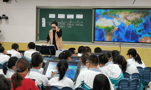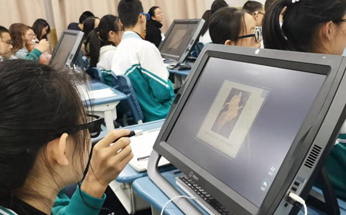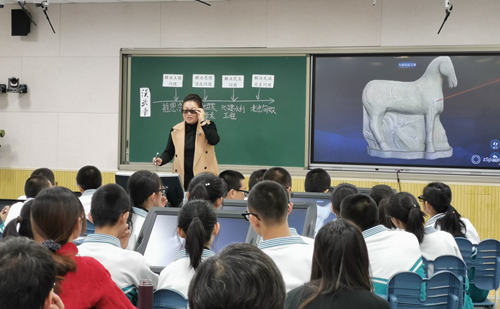 課堂中,鄔老師利用中教啟星文明的足跡歷史VR教學系統向同學們展示了文物“馬踏匈奴”,講述文物背后的故事,介紹紋飾的含義。此外,談到漢武帝時期極具影響力的事件——開發絲綢之路的時候,鄔老師通過系統中立體的地圖和線路演示,讓同學們了解到絲綢之路開發的長度和難度,同時引古喻今,引導學生思考21世紀絲綢之路的現實意義。