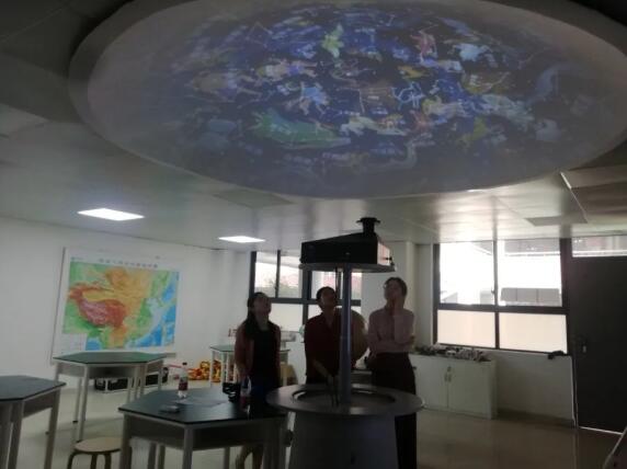 在培訓(xùn)時,學(xué)校的金校長,科學(xué)課的孔老師以及學(xué)校其他學(xué)科的一些老師都積極認真的加入到培訓(xùn)中。培訓(xùn)講師朱寧老師為大家分別展示了適用于小學(xué)科學(xué)課的球幕素材(如:月球與月相)和穹頂素材(如:認識云)。