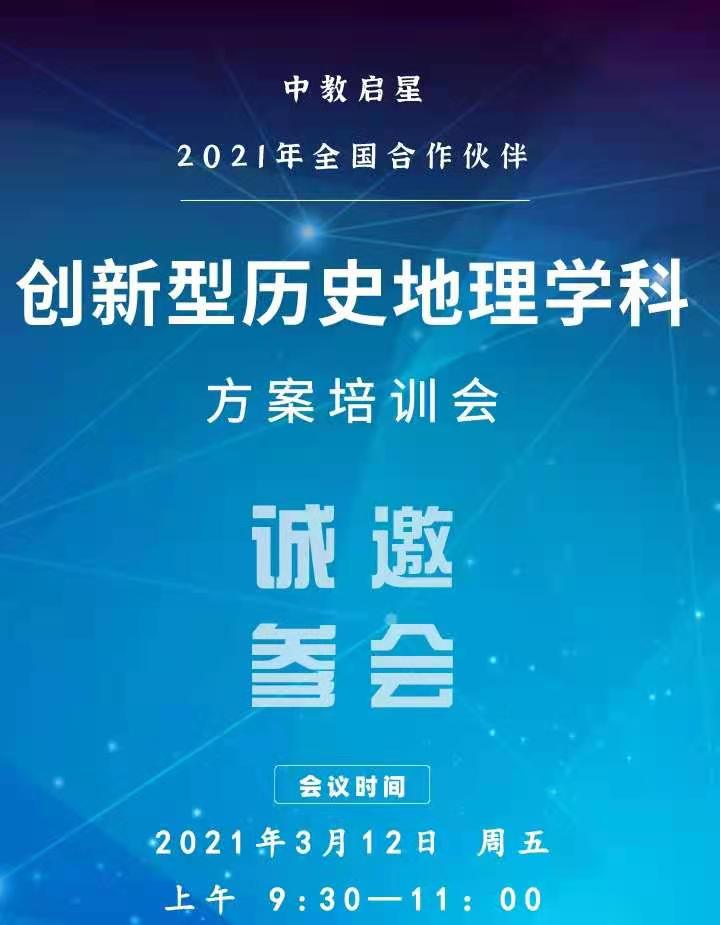 陽春三月,大地回春。3月12日上午9:30,中教啟星隆重召開“中教啟星2021年全國合作伙伴創新型地理歷史學科方案培訓會”。會議采取線上直播的形式進行,中教啟星營銷副總裁李永望、教育研究院副院長王秋平以及VR業務部經理劉東昊為本次會議做講解。